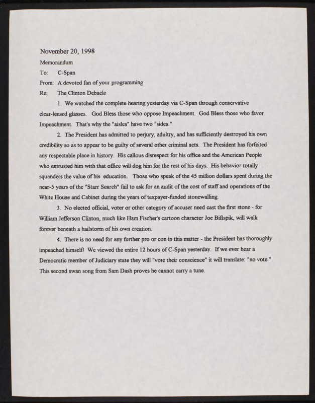 Letter to C-SPAN, 1998-11-20