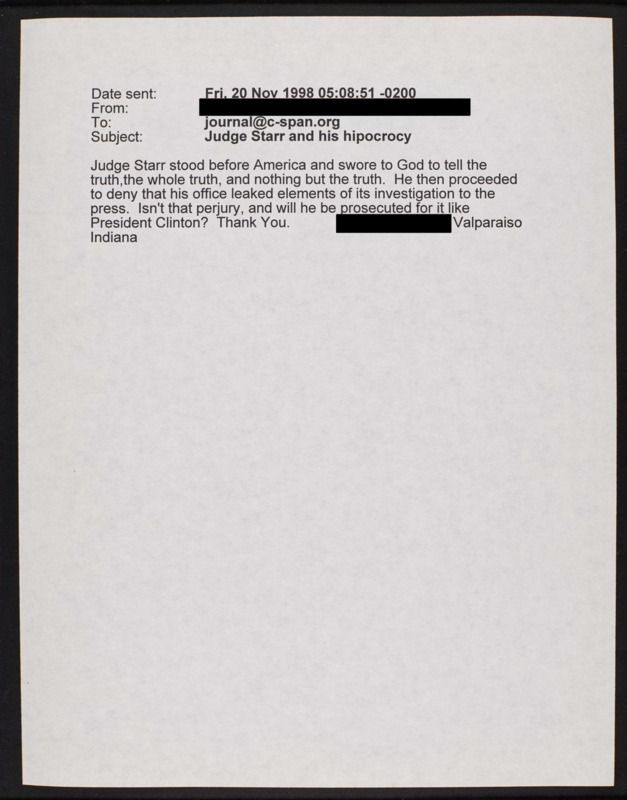 Letter to C-SPAN, 1998-11-20