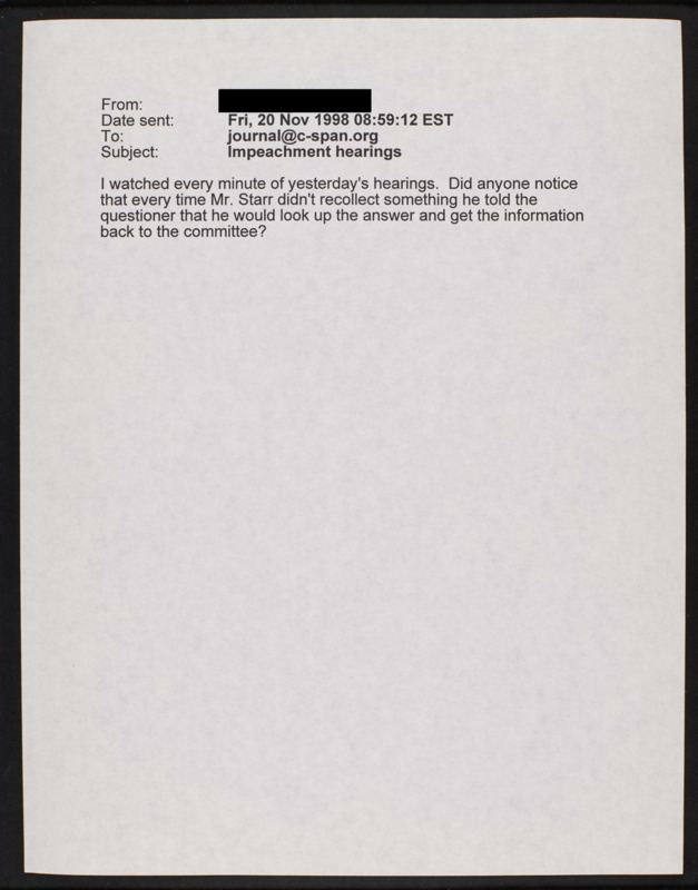 Asks about Ken Starr reporting to the committee that he would look answers up and get back to them.