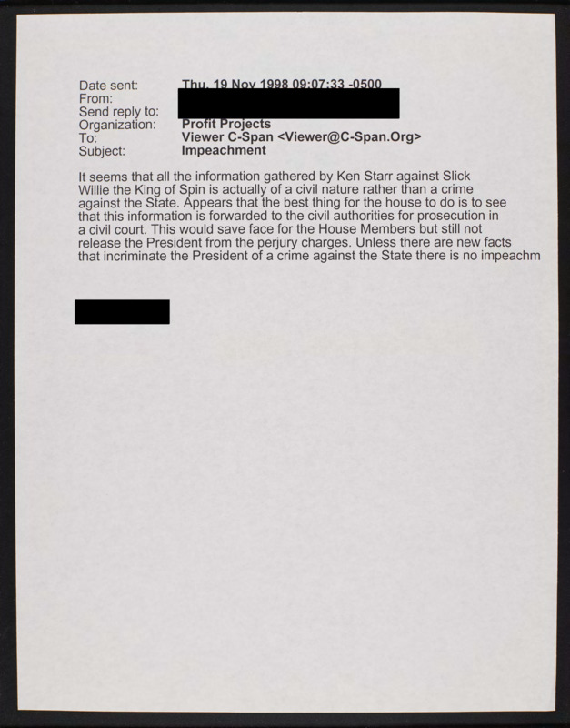 Suggests that the information gathered by Ken Starr be forwarded to civil court for prosecution.