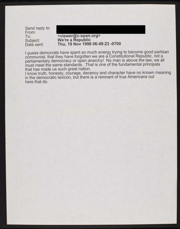 Believes that the Democrats have become communists and reminds them that the United States is a constitutional republic.
