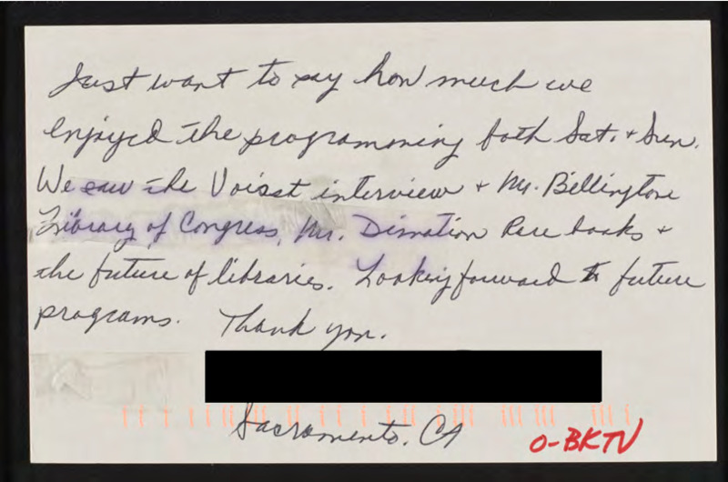 Expresses enjoyment of an episode of Book TV.