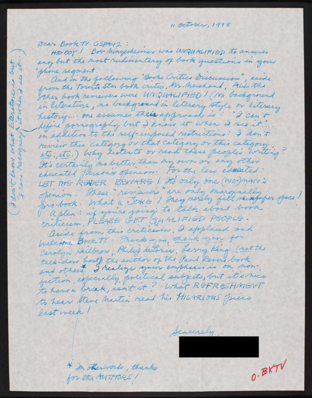 Criticizes two book critics for allegedly being unqualified and requests better critics, then praises Book TV.