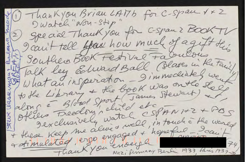 Letter to C-SPAN, 1998; 97201