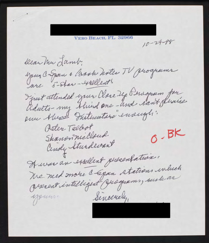 Letter to C-SPAN, 1998-10-24; 32966