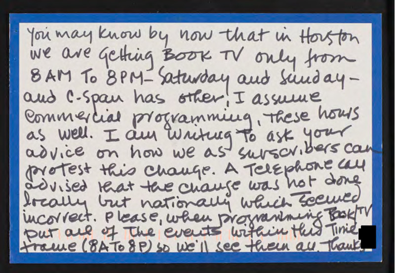 Letter to C-SPAN, 1998-11-16; 77024