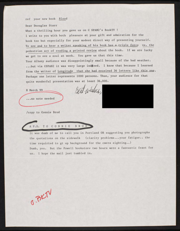 Letter to C-SPAN, 1999-03-08