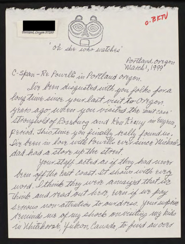 Praises C-SPAN's visit to Powell's Bookstore in Portland, Oregon.