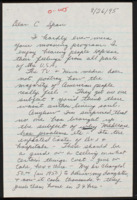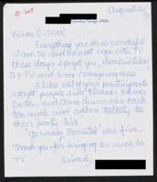 Letter to C-SPAN, n.d. Praises C-SPAN, asks if they could turn down the volume on one of their programs, and asks if they have considered doing a program on cancer research. -
