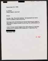 Letter to C-SPAN, 1996-12-30 Corrects a woman's sports reference. -