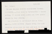 Letter to C-SPAN, 1995-08-27; 64114 Asks who the host is on Sunday Journal. -