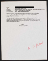 Letter to C-SPAN, n.d. Questions people's support of Bill Clinton, gives their opinion that Bill Clinton is a liar, states that they did not vote for him, and expresses a desire to see more people opposed to Clinton represented in the news. -