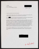 Letter to C-SPAN, n.d. Offers opinion that the allegations against the Clintons are untrue in part because Chelsea Clinton is well-adjusted. -