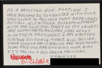 Letter to C-SPAN, n.d.; 37920 Disagrees with public opinion polls in favor of Bill Clinton. -