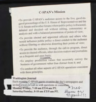 Letter to C-SPAN, n.d. Encloses a clipping stating C-SPAN's mission related to C-SPAN's attempt to balance their call-in shows. -