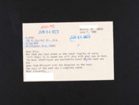 Letter to C-SPAN, n.d.; 73112 States disappointment at missing full broadcast of the Durenberg hearings in the Senate due to it being aired late in the day. -