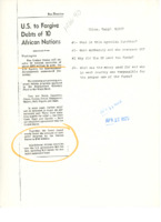 Letter to C-SPAN, n.d.; 95927 Includes a photocopy of an article on debt relief of African nations from a San Francisco paper and poses four questions about the funds. -