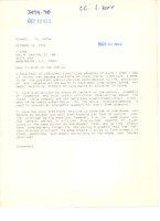 Letter to C-SPAN, 1990-10-18; 34994 States he is a regular viewer of C-SPAN and poses some questions for the House and the Senate. -