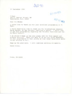 Letter to C-SPAN, 1990-11-21; 65201 Requests a copy of the standard time program schedule and expresses interest in the English Parliament coverage. -