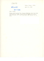 Letter to C-SPAN, 1990-04-24; 53704 Encloses a check to pay for a transcript of an interview with Senator James Abourezk. -
