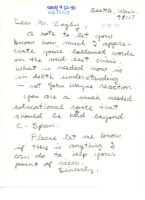 Letter to C-SPAN, n.d.; 98117 Expresses appreciation for C-SPAN's coverage of the Middle East crisis. -