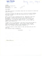 Letter to C-SPAN, 1990-08-22; 44107 Thanks C-SPAN for coverage, then expresses opinion that the Iraqi ambassador's segment was propagandistic and dangerous. Back page is letter to the Cato Institute, copying C-SPAN. -