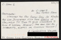 Letter to C-SPAN, 1997-08-26 Criticizes C-SPAN for giving time to Ron Owens, who they feel is a "liberal moron." -