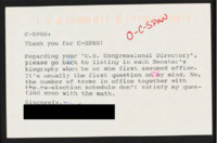 Letter to C-SPAN, 1995/2000? Requests that C-SPAN alter the U.S. Congressional Directory to include when Senators assumed office. -