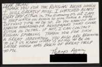 Letter to C-SPAN, 1995/1999? States disappointment that C-SPAN is no longer airing the Russian news and hopes they will reconsider. -