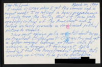 Letter to C-SPAN, 1994-03-28; 95010 Expresses discontent with Republicans and their obsession with finding dirt on Clinton. -