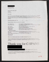 Letter to C-SPAN, n.d. Thanks C-SPAN. -