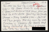 Letter to C-SPAN, 1998-12-14 Expresses hatred of a particular C-SPAN guest for their language and allegedly "spitting filth." -