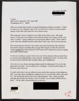Letter to C-SPAN, n.d.; 30040 Expresses appreciation for having a political cartoonist on C-SPAN, then suggests having Michael Parenti or Howard Zinn on. -