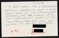 Letter to C-SPAN, 1998-12-11; 06096 Expresses opinions that no callers say anything useful, criticizes Black people's support of Bill Clinton, and feels the education system is to blame. -