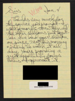 Letter to C-SPAN, 1995-01-20; 21050 Asks the network to provide information about the reporter speaking. -