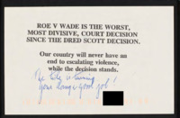 Letter to C-SPAN, 1995-01-23; 30269 States opinion that the Roe v. Wade case is the worst Supreme Court decision since Dred Scott. -