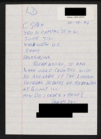 Letter to C-SPAN, 1994-10-06; 37816 Expresses interest in obtaining a copy of a presentation delivered to an African American women's group from an editor of Essence magazine. -