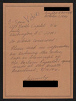 Letter to C-SPAN, 1994-10-18; 44515 Requests recordings of Senate speeches from C-SPAN on behalf of their ailing grandmother, who previously purchased more expensive copies from the National Archives. -