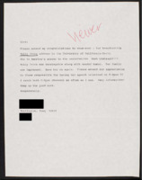 Letter to C-SPAN, n.d.; 85719 Enjoys the broadcast of the State Dinner with Steve Scully and Laurie Firestone. Briefly mentions covering Nelson Mandela's visit. -
