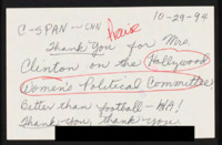 Letter to C-SPAN, 1994-10-29; 48197 Thanks the network for broadcasting Hillary Clinton's speech at the Hollywood Women's Political Committee. -