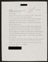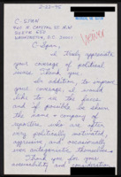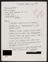 Letter to C-SPAN, n.d.; 20165 Praises the network and says the Booknotes program with Milton Friedman and Marvin Olasky was terrific. Asks if the network accepts volunteers for office work. -