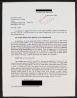Letter to C-SPAN, 1994-11-21; 44126 Discusses "myths" about the budget deficit and GATT, refuting claims made by Congresspeople about both subjects. -