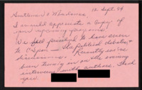 Letter to C-SPAN, 1994-09-06; 17313 Praises the network's programs, specifically Booknotes. Suggests using a voice-mail service for the Journalists' Roundtable, and praises Brian Lamb's interview methods. -