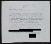 Letter to C-SPAN, 1994-09-08; 67410 Expresses enjoyment of C-SPAN and their music, comments on an interview with David Brock regarding Clarence Thomas, and recommends Jerry Falwell, then discusses why they did not vote for Bill Clinton. -