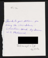 Letter to C-SPAN, n.d.; 46205 Thanks the network for televising the 1994 Islamic Conventions. -
