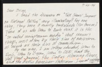 Letter to C-SPAN, 1994-07-01; 31792 Asks the last time Brian Lamb read a viewer's letter on a program because calling is expensive. -