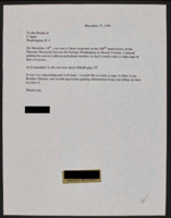 Letter to C-SPAN, 1999-12-22; 20880 Congratulates C-SPAN on the American Presidents series, states he is a descendant of William Henry Harrison, and asks to be put in touch with someone featured on the William Henry Harrison episode of the series. -
