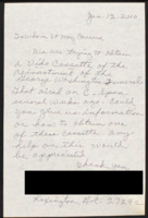 Letter to C-SPAN, 2000-01-12; 27292 Asks for information on how to obtain a video tape of the reenactment of the George Washington funeral services. -