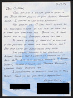 Letter to C-SPAN, 1999-04-19; 33625 States interest in the discussion of the DNA testing related to Thomas Jefferson and interest in seeing more episodes of the American Presidents series, then requests a program schedule. -