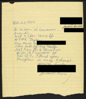 Letter to C-SPAN, 1999-02-18; 22401 Describes a conflict between the city council and citizens and gives information if Brian Lamb would care to participate. -